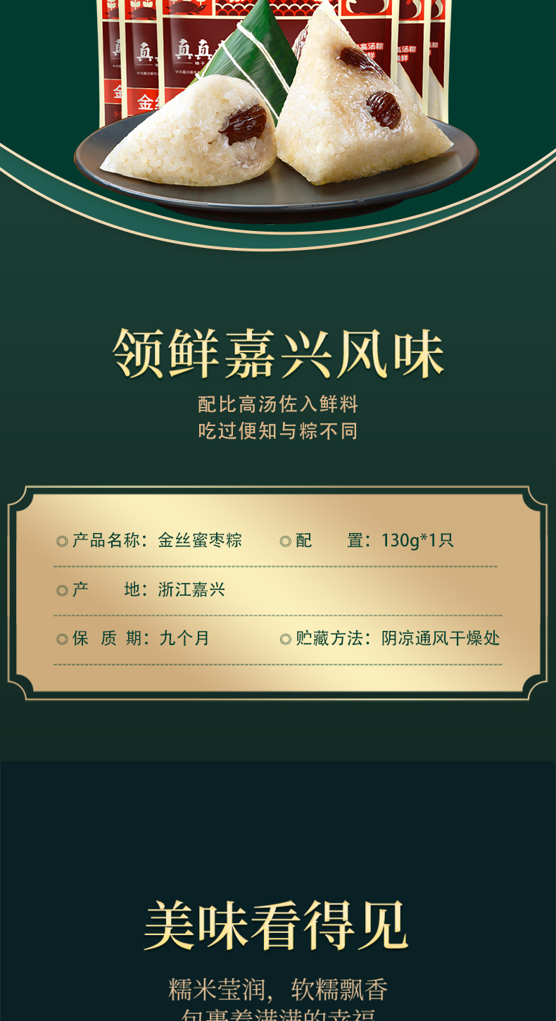 130g/袋*2袋 真真老老嘉兴粽子金丝蜜枣粽130g浙江特产端午甜粽早餐粽子