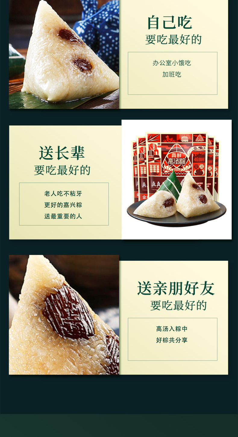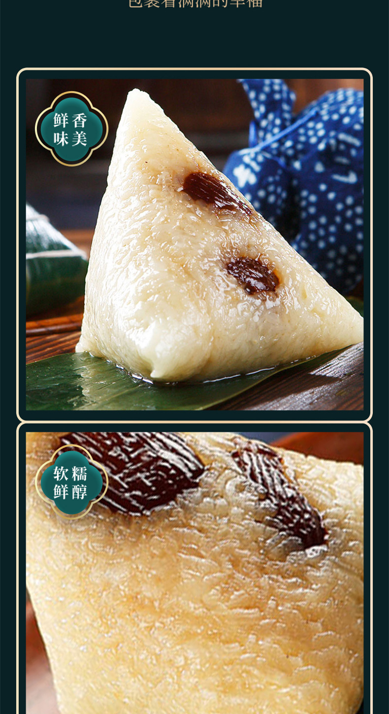嘉兴粽子三珍斋蛋黄肉粽甜粽100g*2只袋装新鲜手工粽子