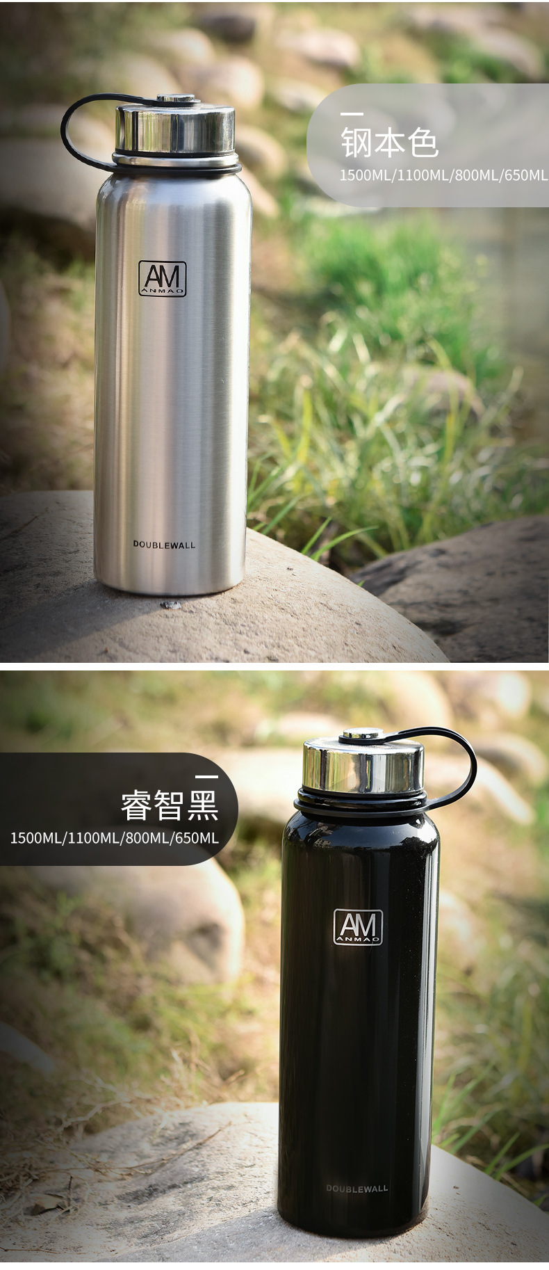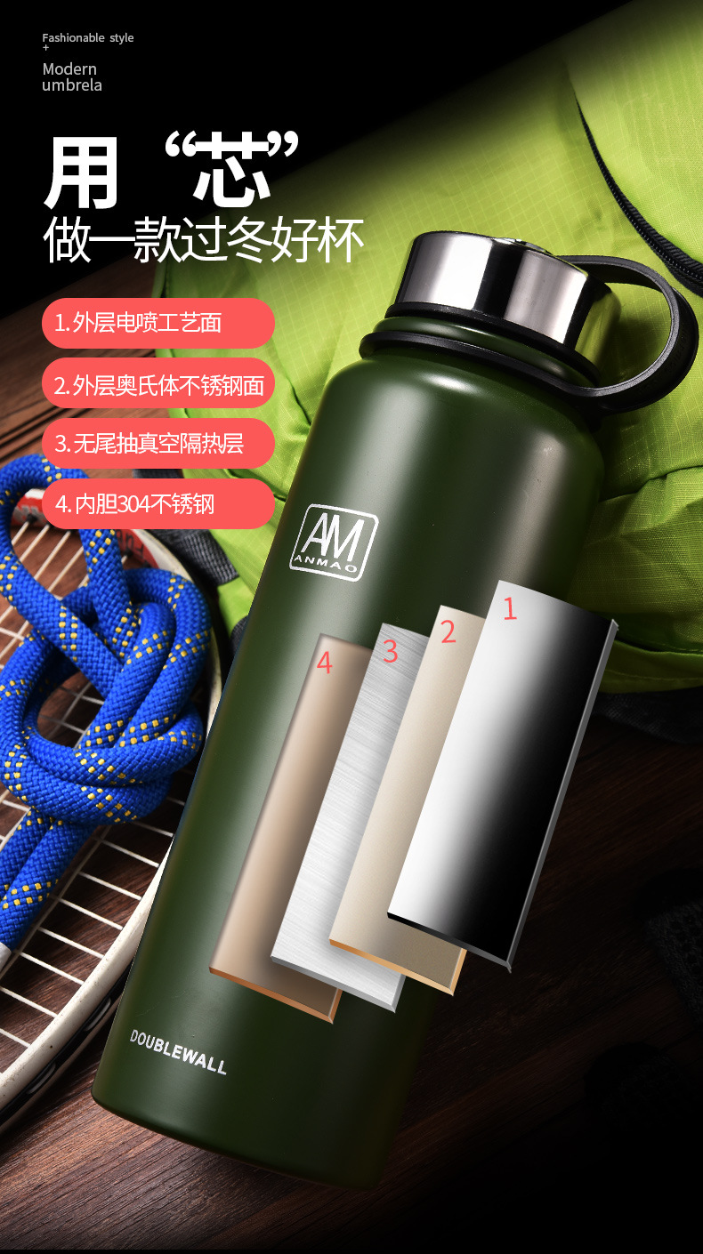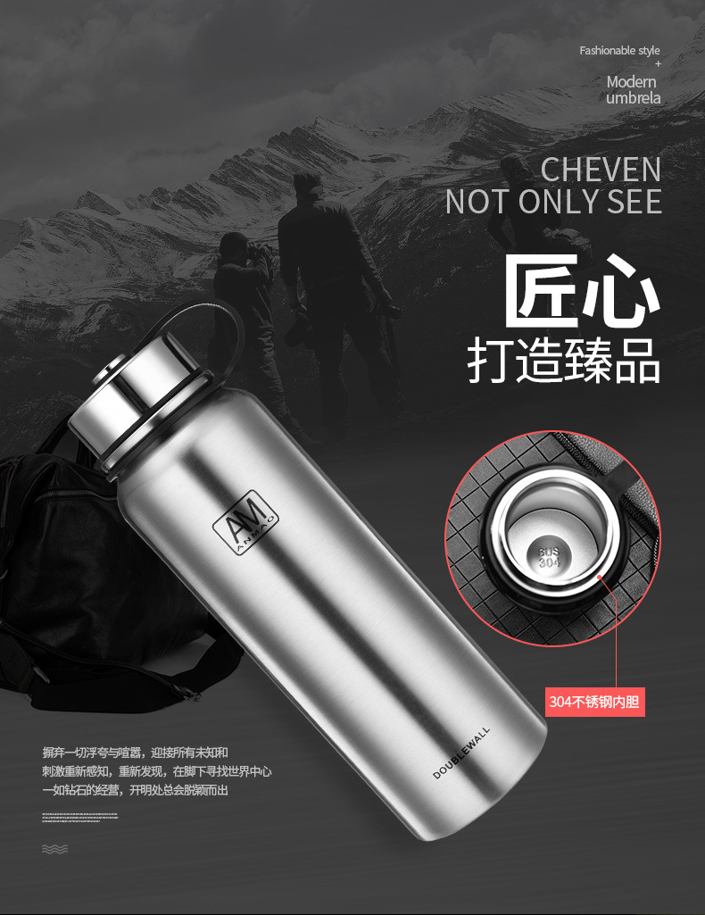 新款304不锈钢真空保温杯便携大容量户外运动水壶