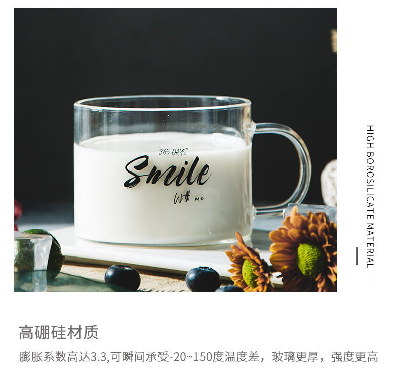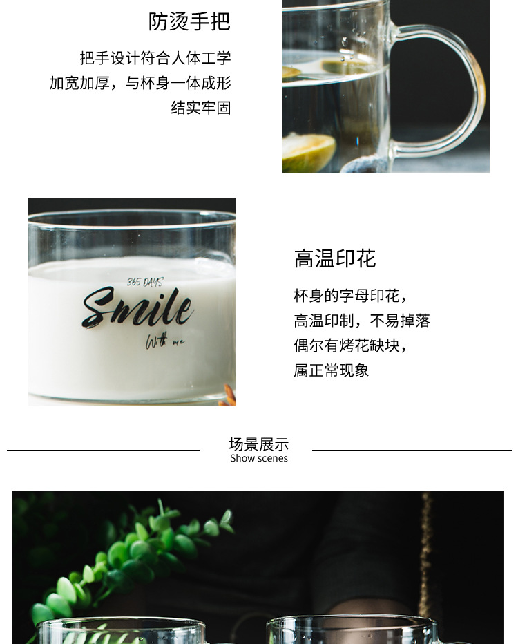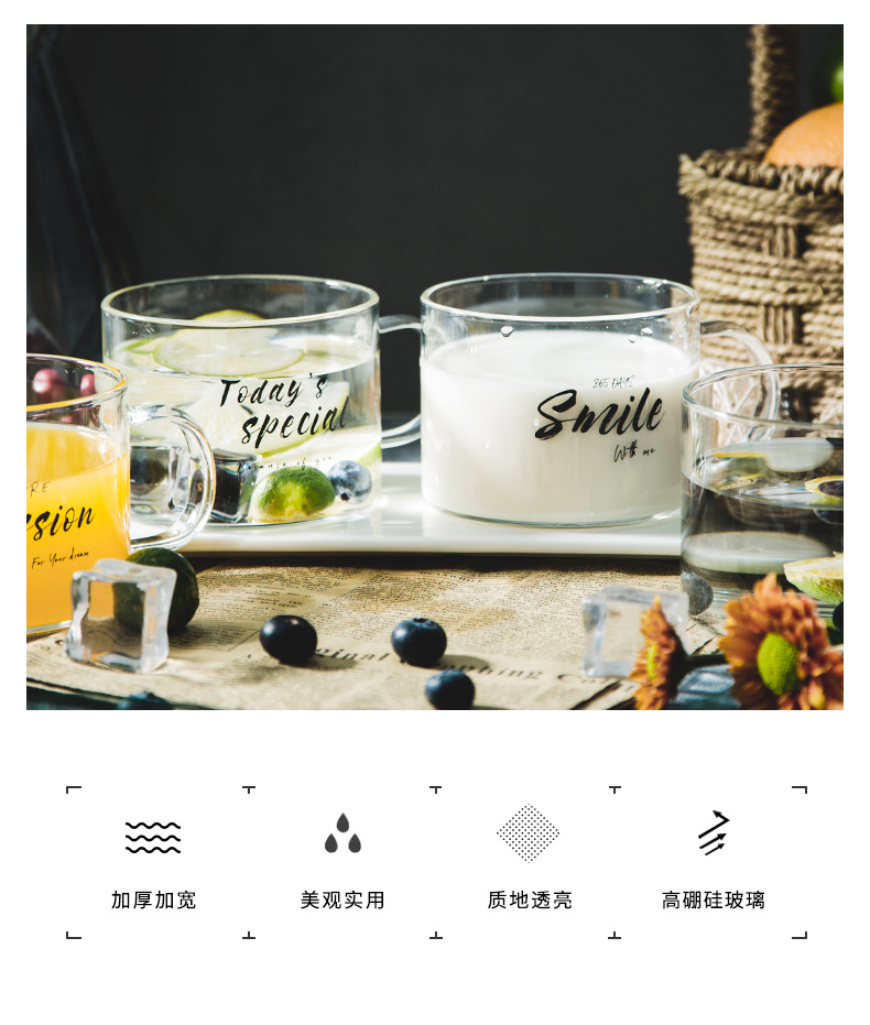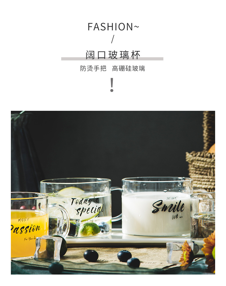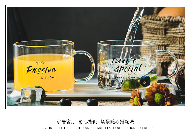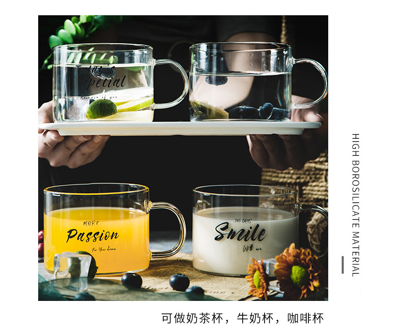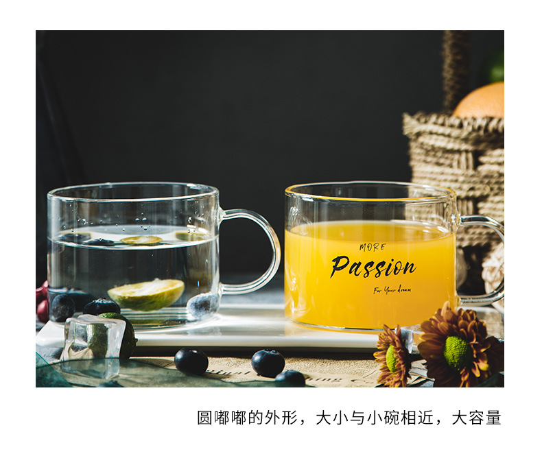 创意字母耐高温玻璃杯子大号带把马克杯办公室茶杯甜品杯早餐杯
