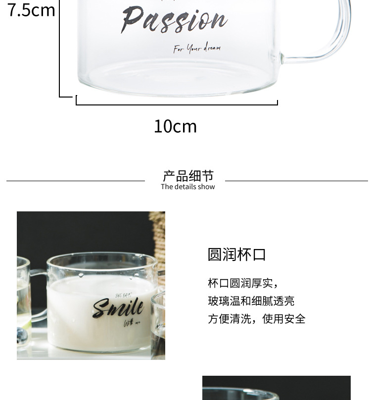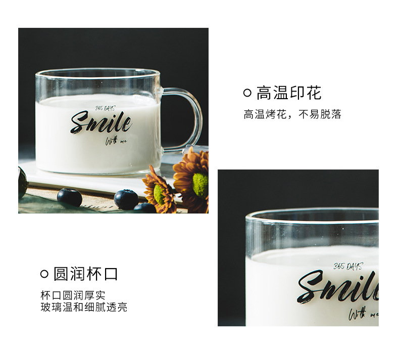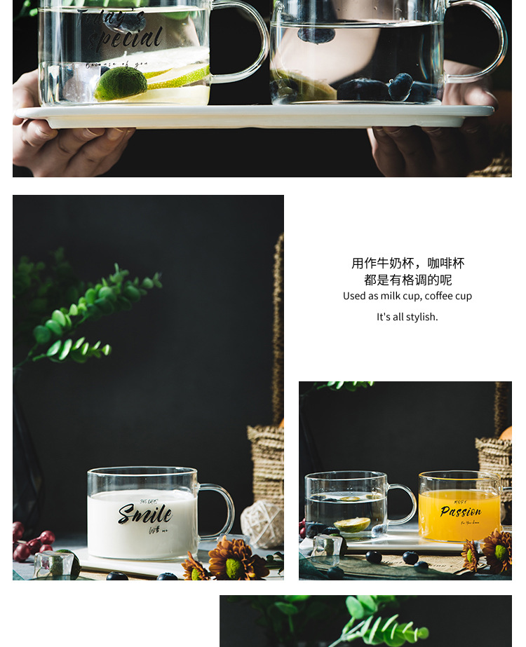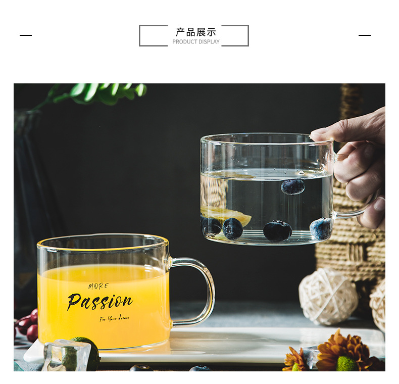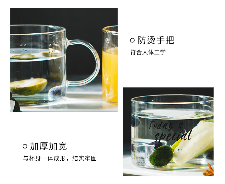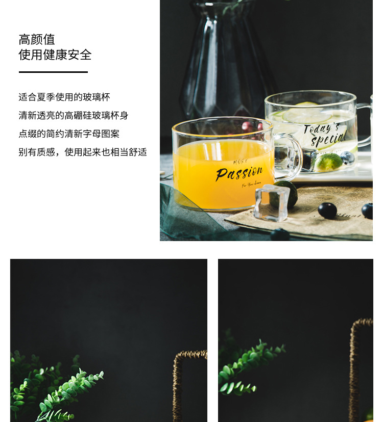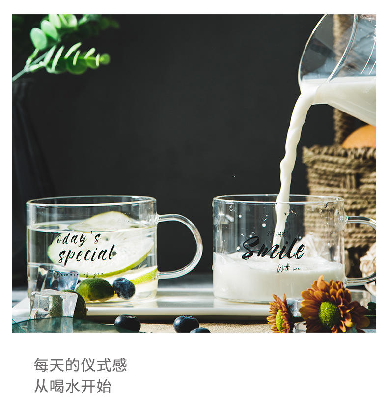创意字母耐高温玻璃杯子大号带把马克杯办公室茶杯甜品杯早餐杯