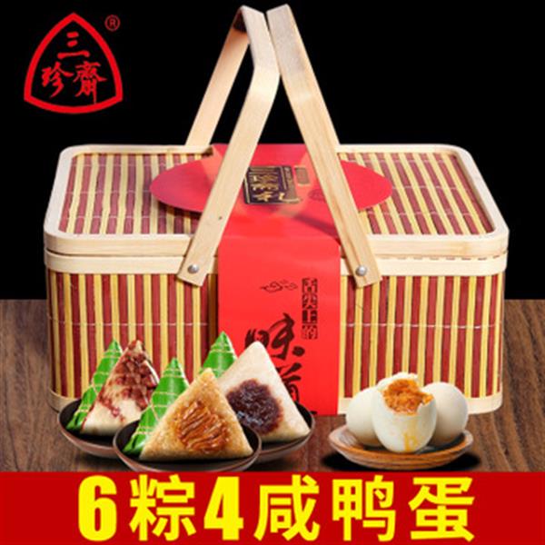 三珍斋粽子礼盒装多口味嘉兴粽子竹篮礼盒端午节公司福利礼品