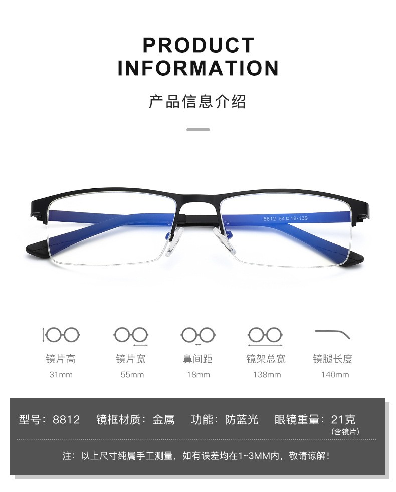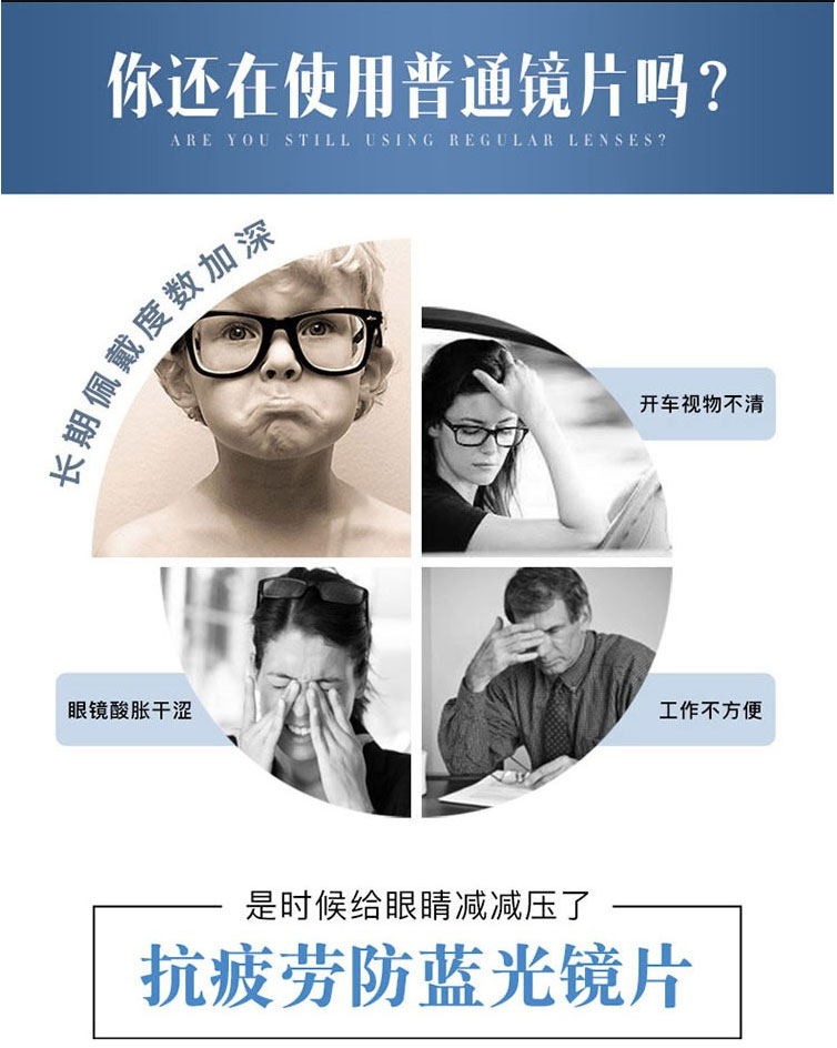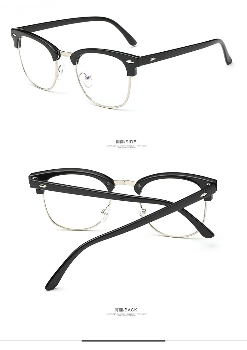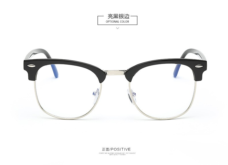 护目镜防抗疲劳防蓝光眼镜男女防辐射明星同款电脑游戏通用办公学习眼镜 3016亮黑银圈