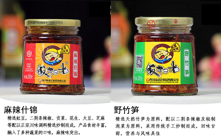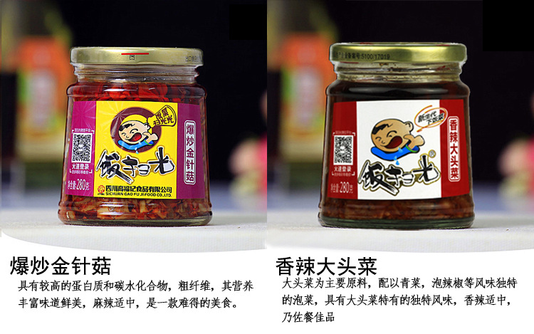 280g*2瓶 四川特产重庆饭扫光280g拌面拌饭佐餐调味料下饭菜野香菌金针菇