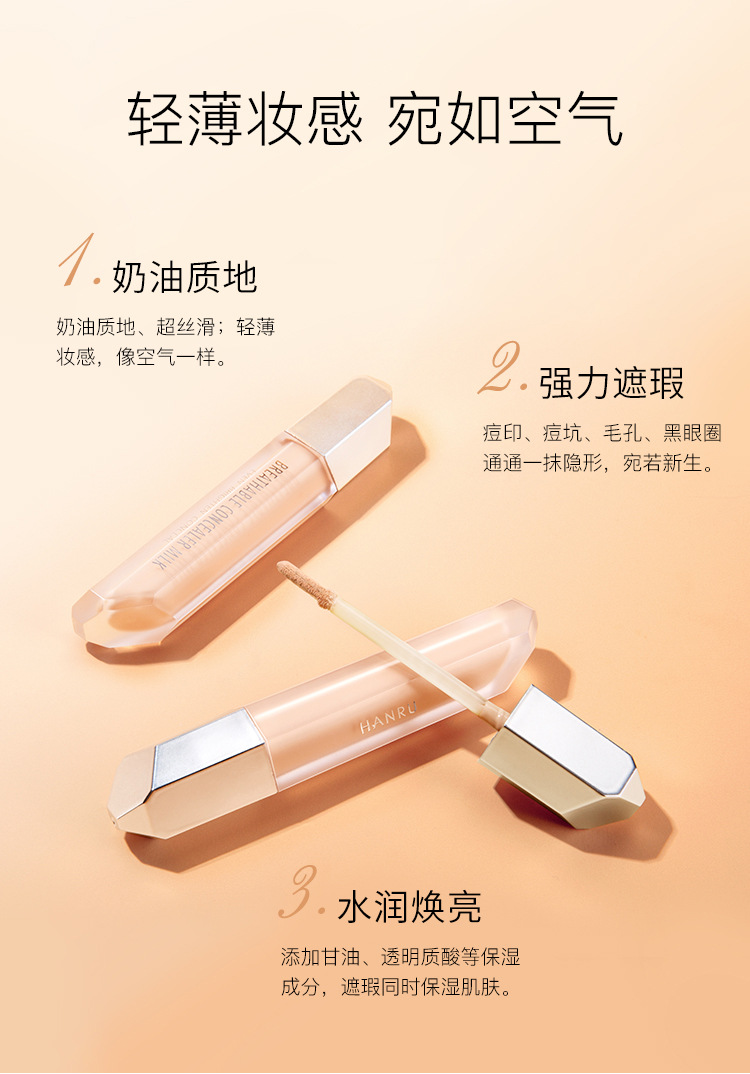韩汝遮瑕乳空气感持久遮盖黑眼圈斑点痘印 持久修容毛孔遮瑕膏