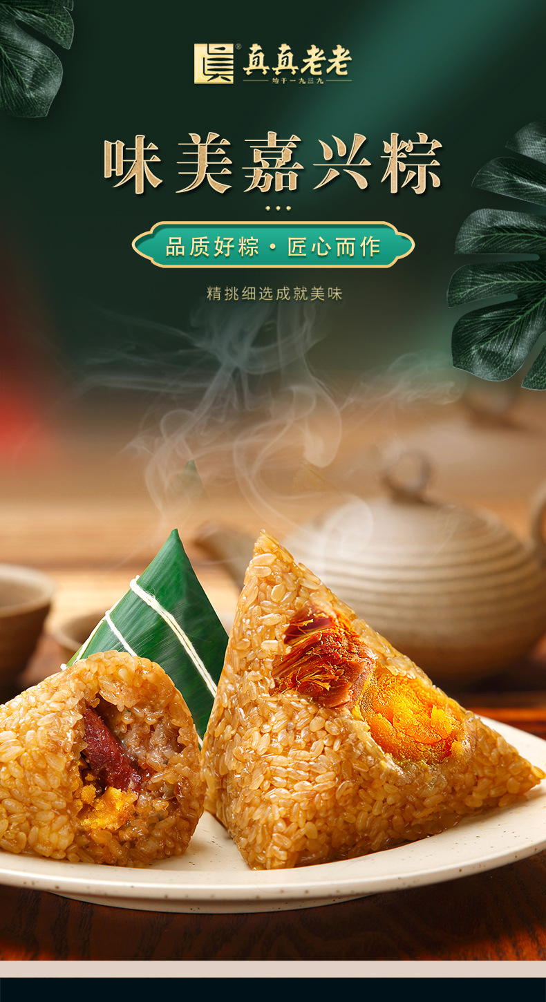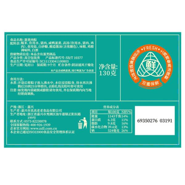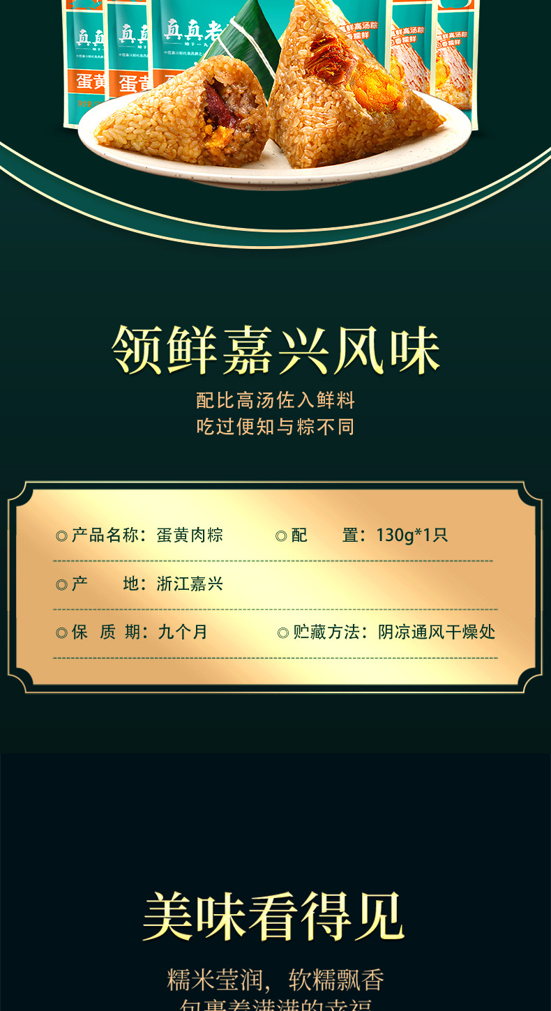 130g/袋*2袋 真真老老蛋黄肉粽130g浙江特产嘉兴咸粽子早餐速食小吃