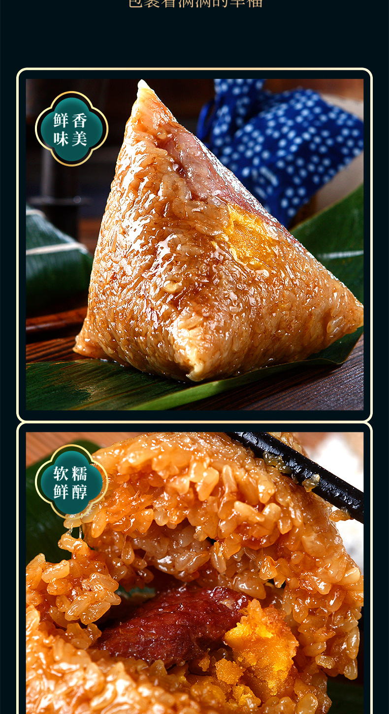 嘉兴粽子三珍斋蛋黄肉粽甜粽100g*2只袋装新鲜手工粽子